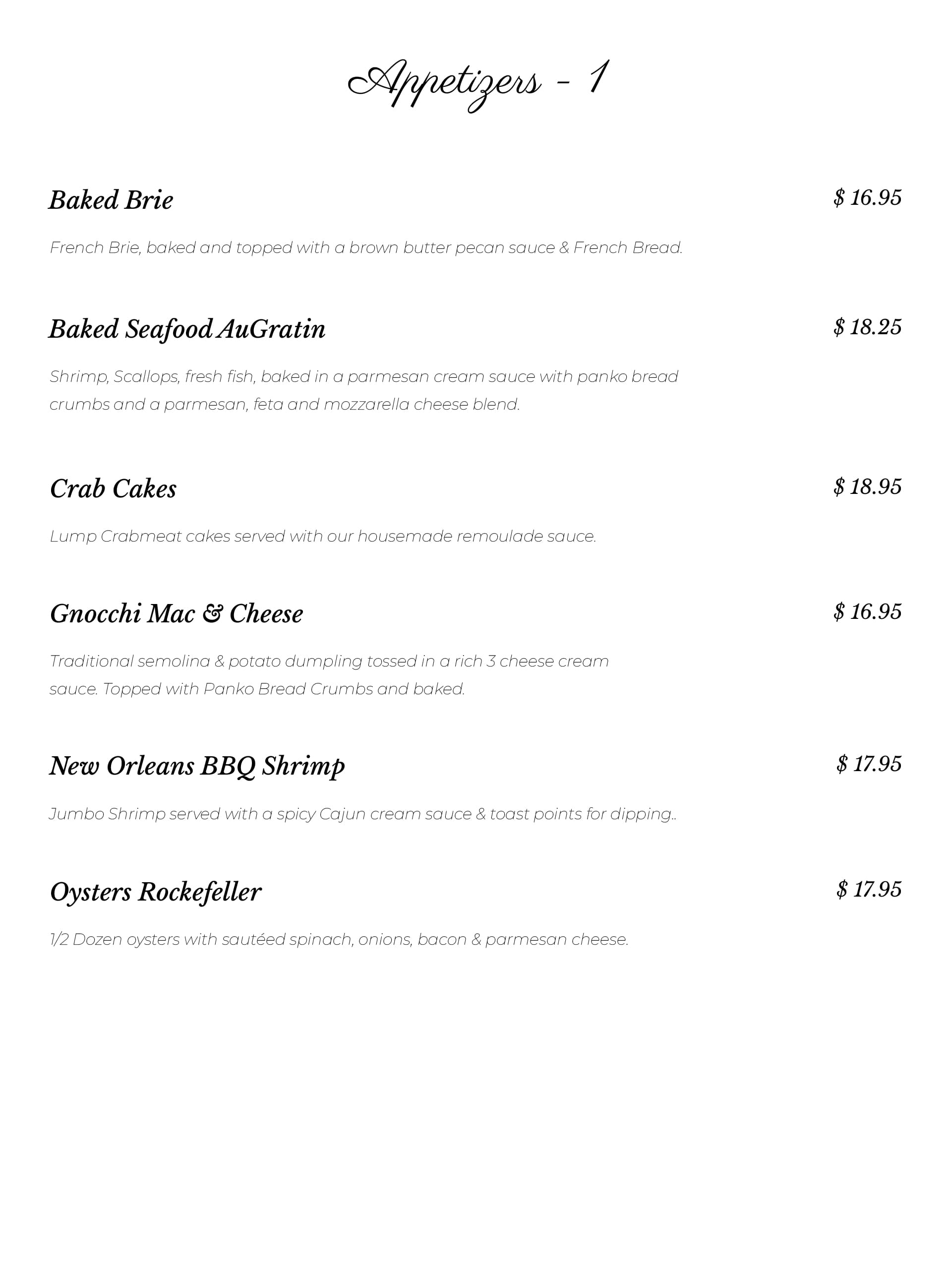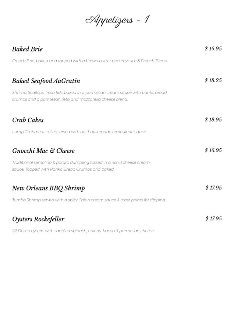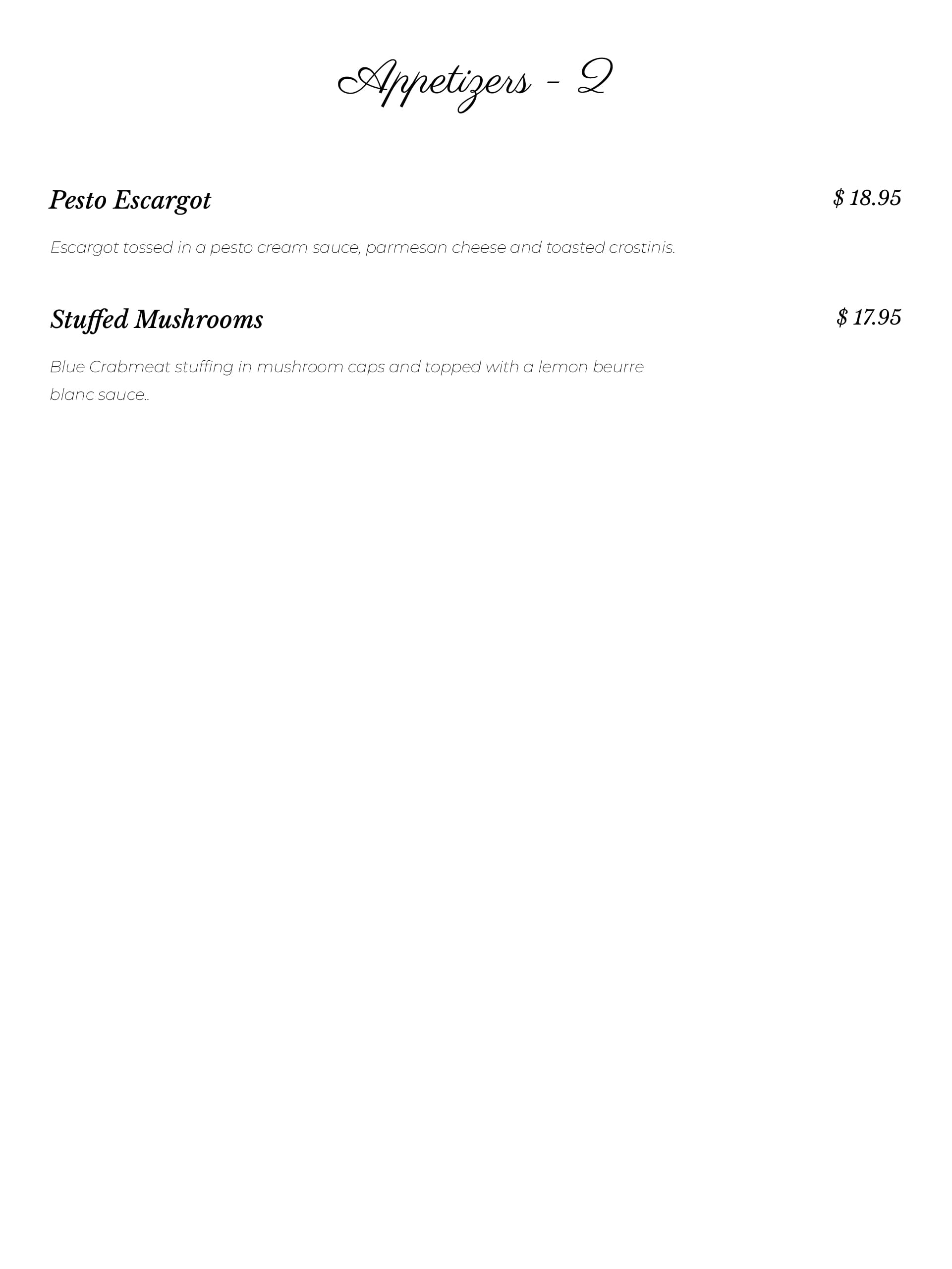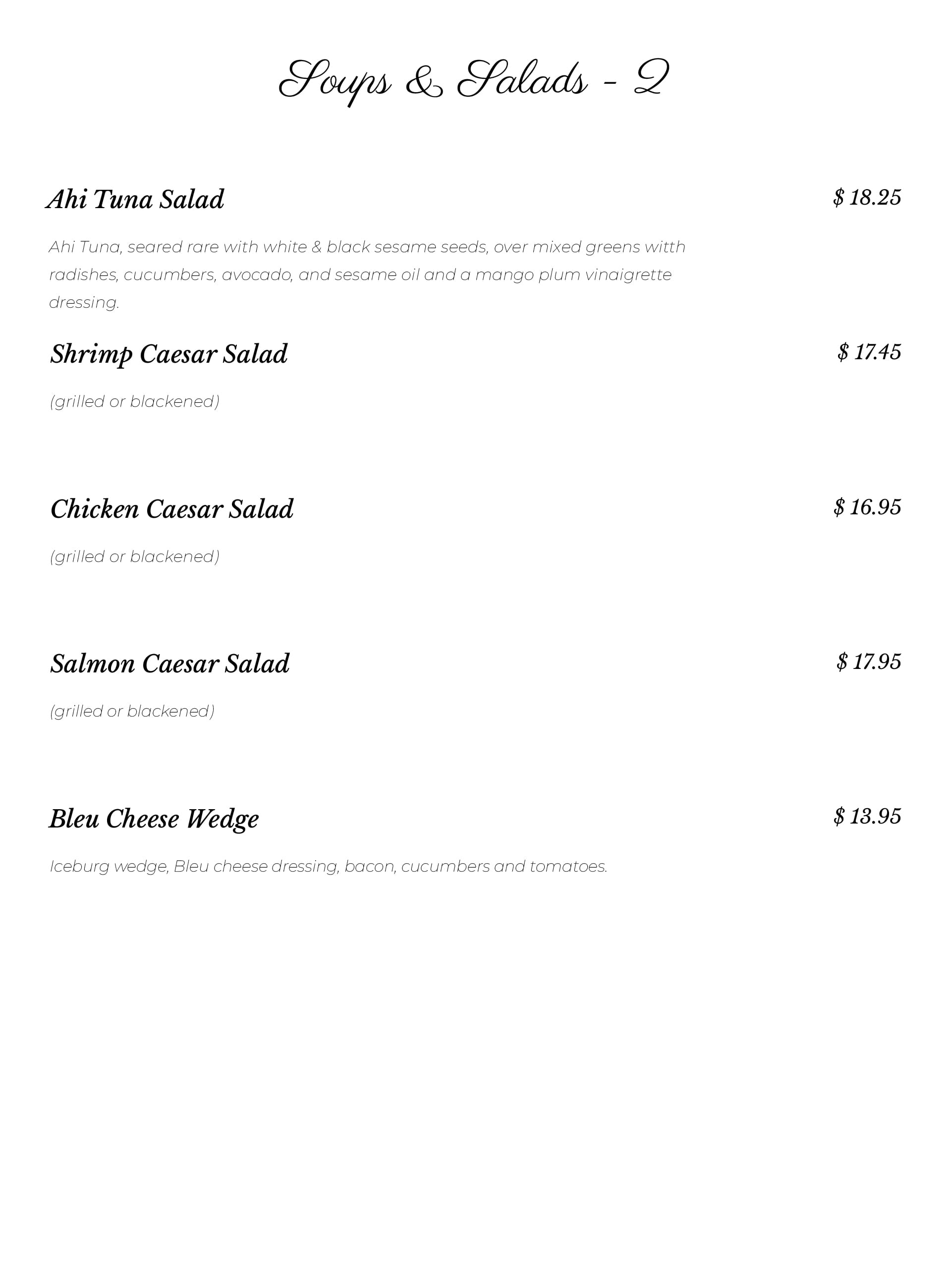 Dinner Menu