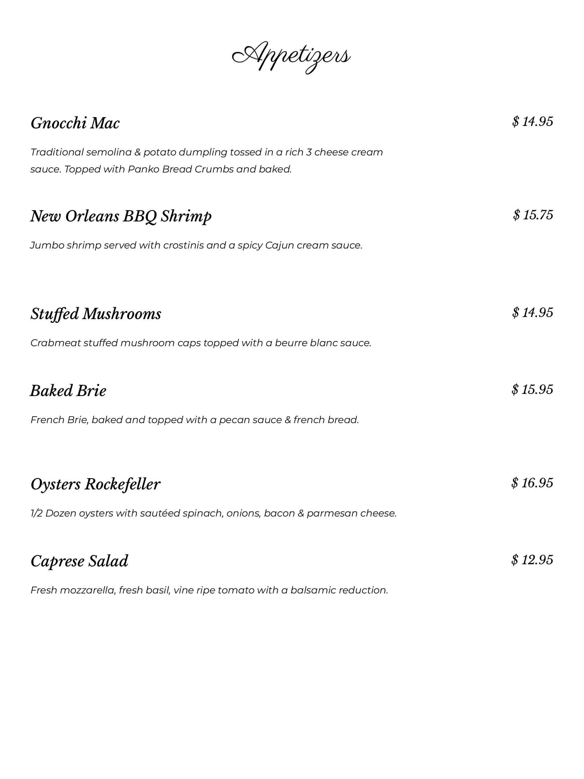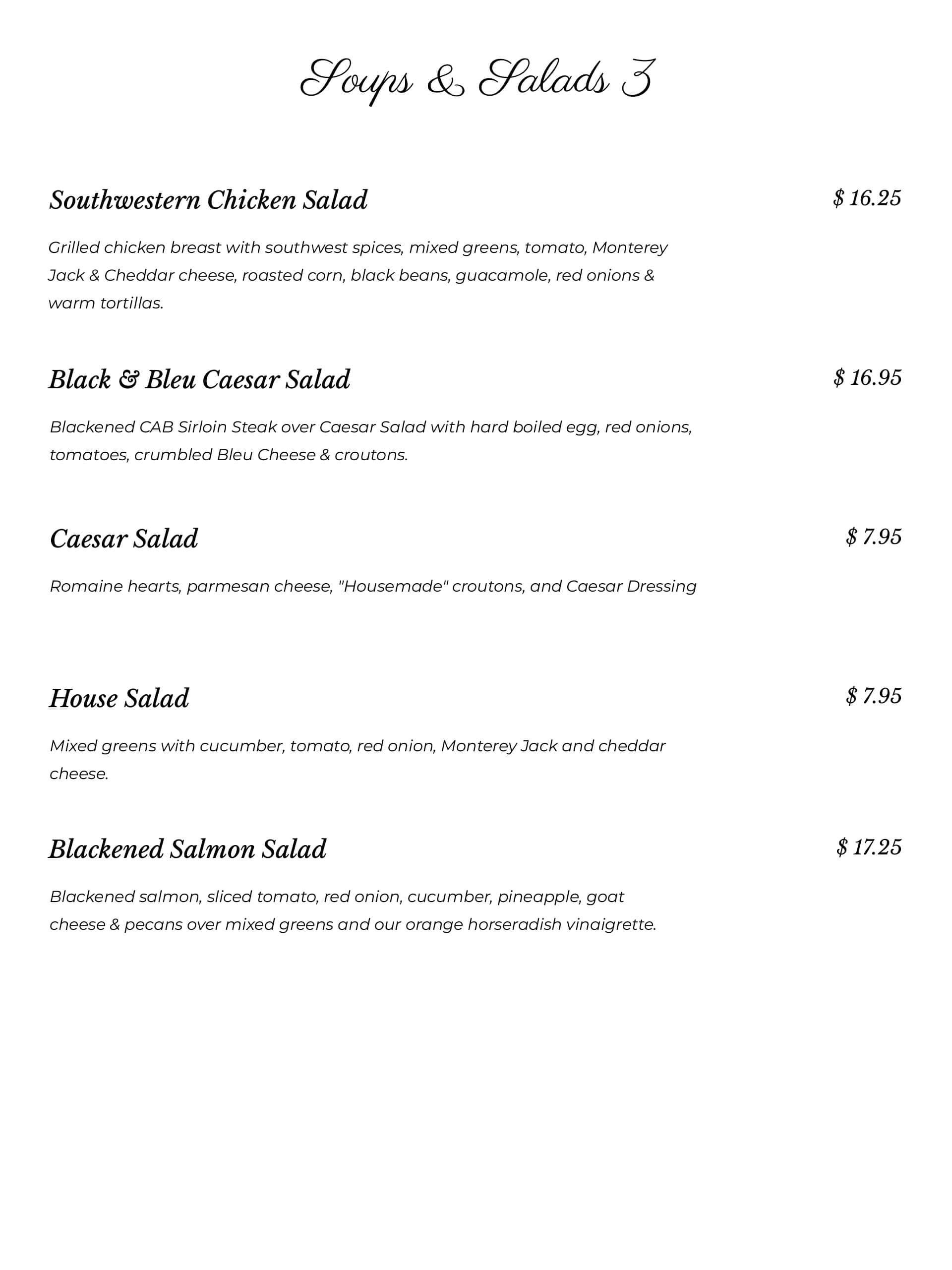 Dinner Menu